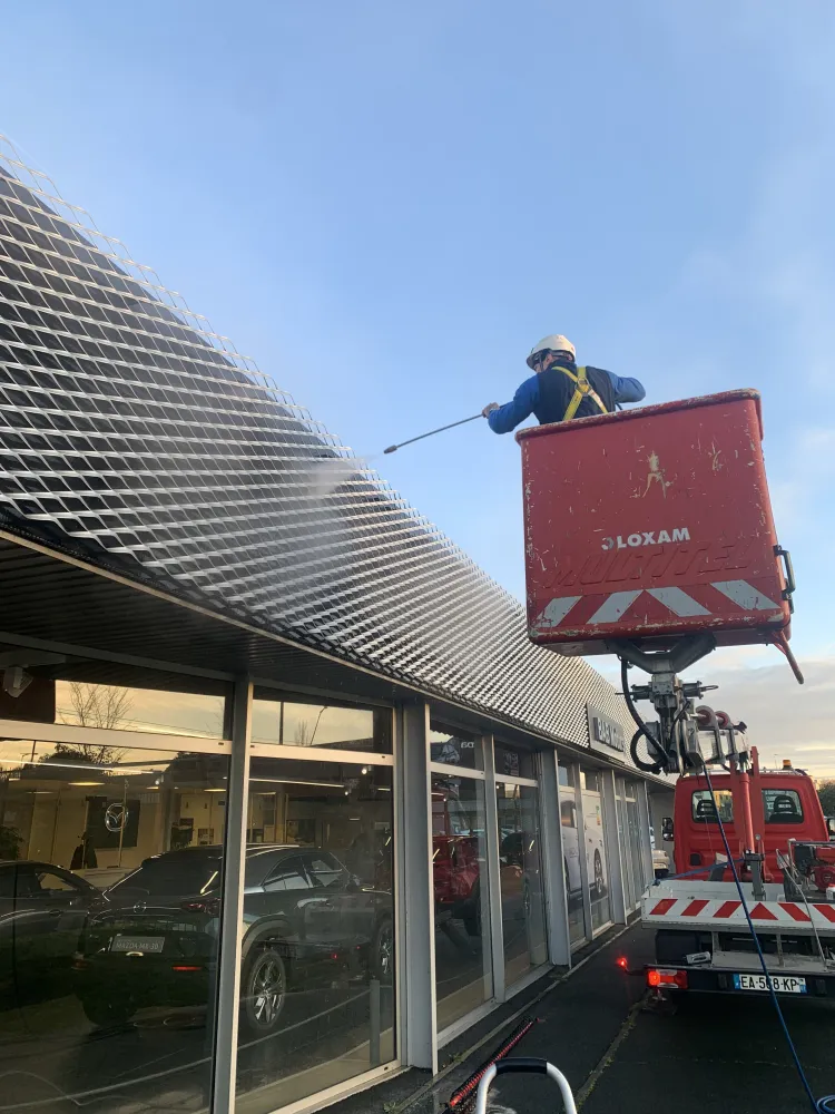 Entrepôts, bâtiments industriels, sites logistiques : Wonder Landes est votre expert du nettoyage industriel de bardages en hauteur avec nacelle à Dax, Mont-de-Marsan et dans les Landes. Grâce au nettoyage haute pression professionnel et à une forte expérience du milieu industriel, nous assurons des façades propres, durables et conformes à l’image de votre site.